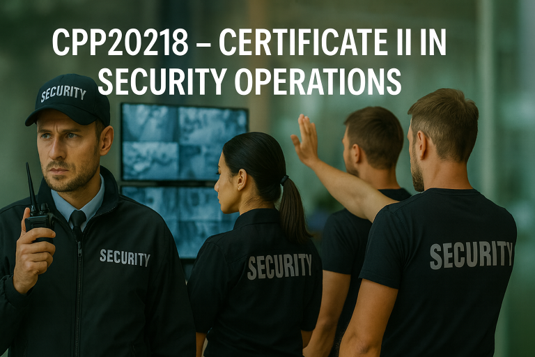 The CPP20218 – Certificate II in Security Operations qualification reflects the role of security officers who work under limited supervision to maintain safety and security across various environments. This program equips students with the practical skills and theoretical knowledge required to communicate effectively, monitor and manage risks, respond to incidents, and protect people, property, and premises.